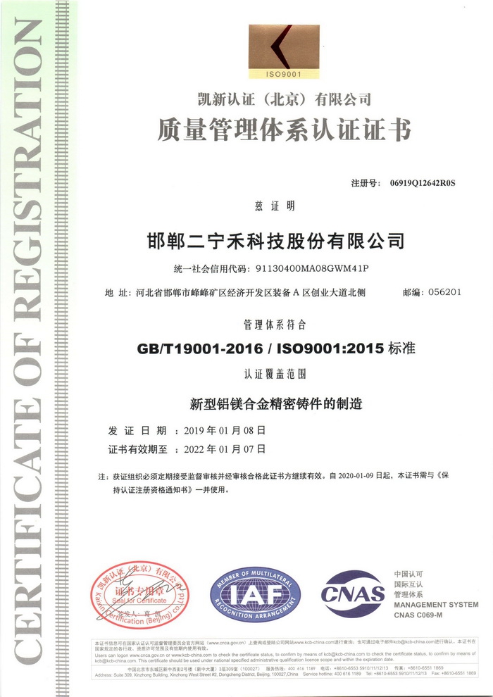 質量管理體系認證證書